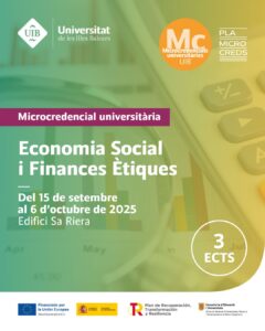 Més informació i inscripcions: https://fueib.org/ca/uibtalent/238/formacion/curso/1437/microcredencial-universitaria-deconomia-social-i-finances-etiques-3-ects