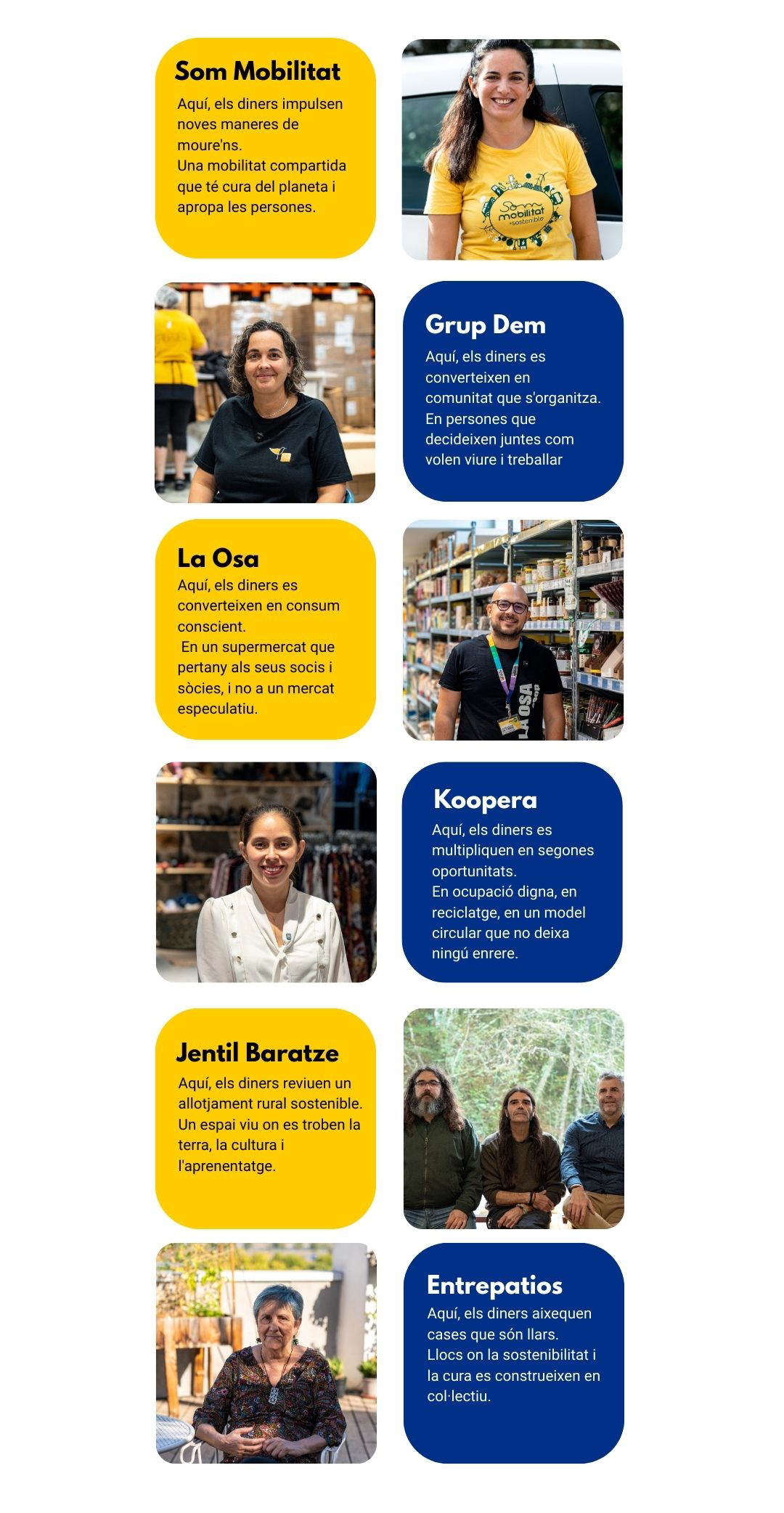 Aquest vídeo recull aquestes veus. Veus reals de persones sòcies i clientes, i organitzacions finançades