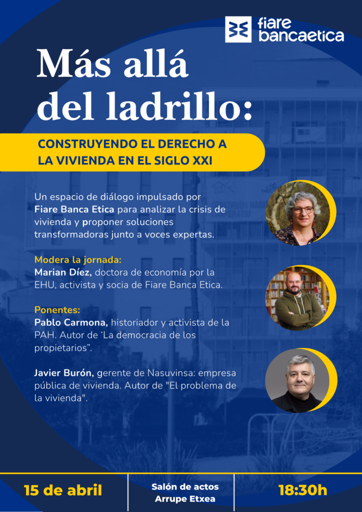 La vivienda se ha consolidado como uno de los principales problemas sociales en España, especialmente en territorios como Bizkaia. Desde Fiare Banca Etica impulsamos un espacio de reflexión que va más allá del mercado inmobiliario para abordar la vivienda como un derecho fundamental.